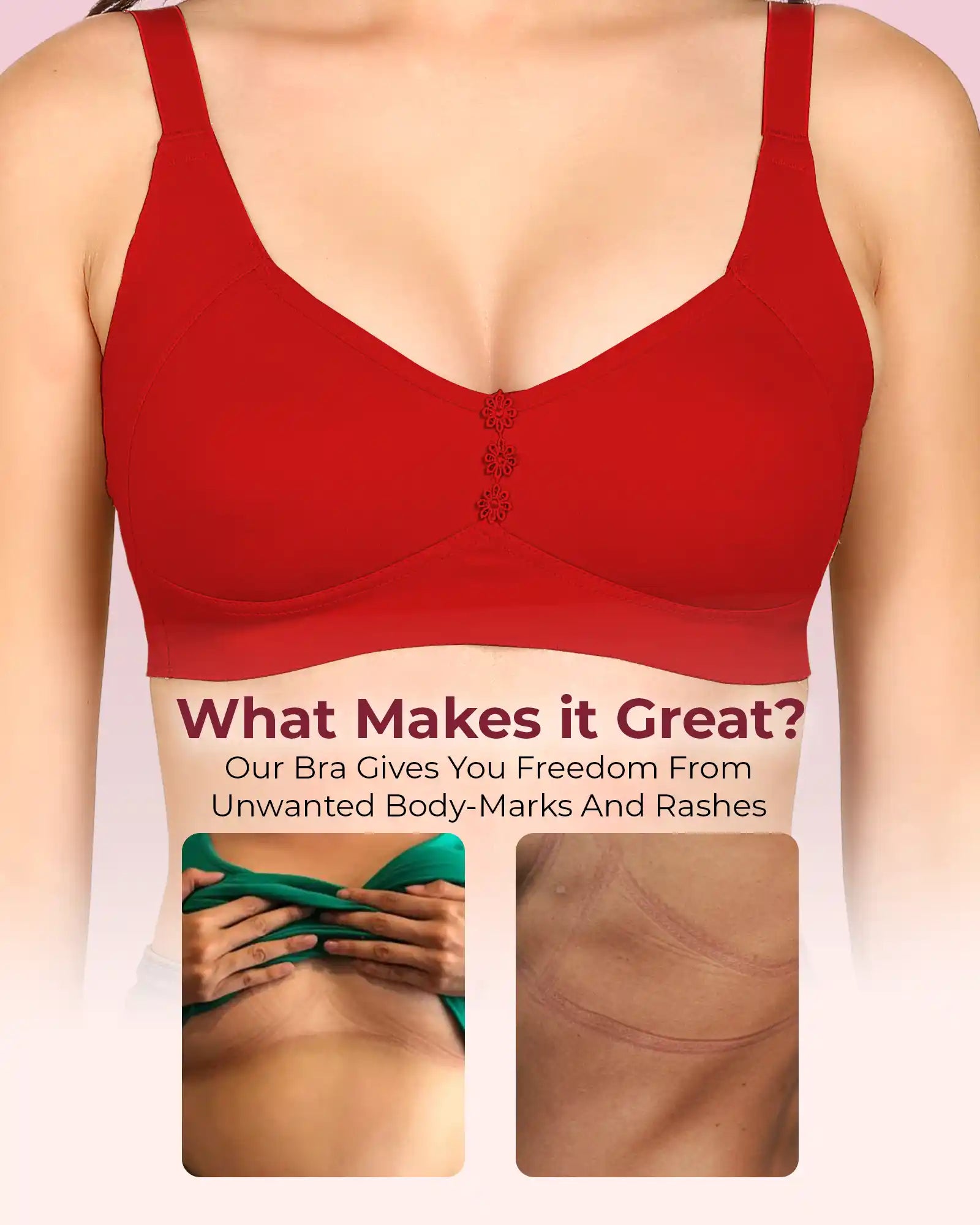 No-Dig, Irritation-Free Bands: Our signature elastic-free bottom band and sidewings ensure all-day comfort without rashes, red marks, or digging.