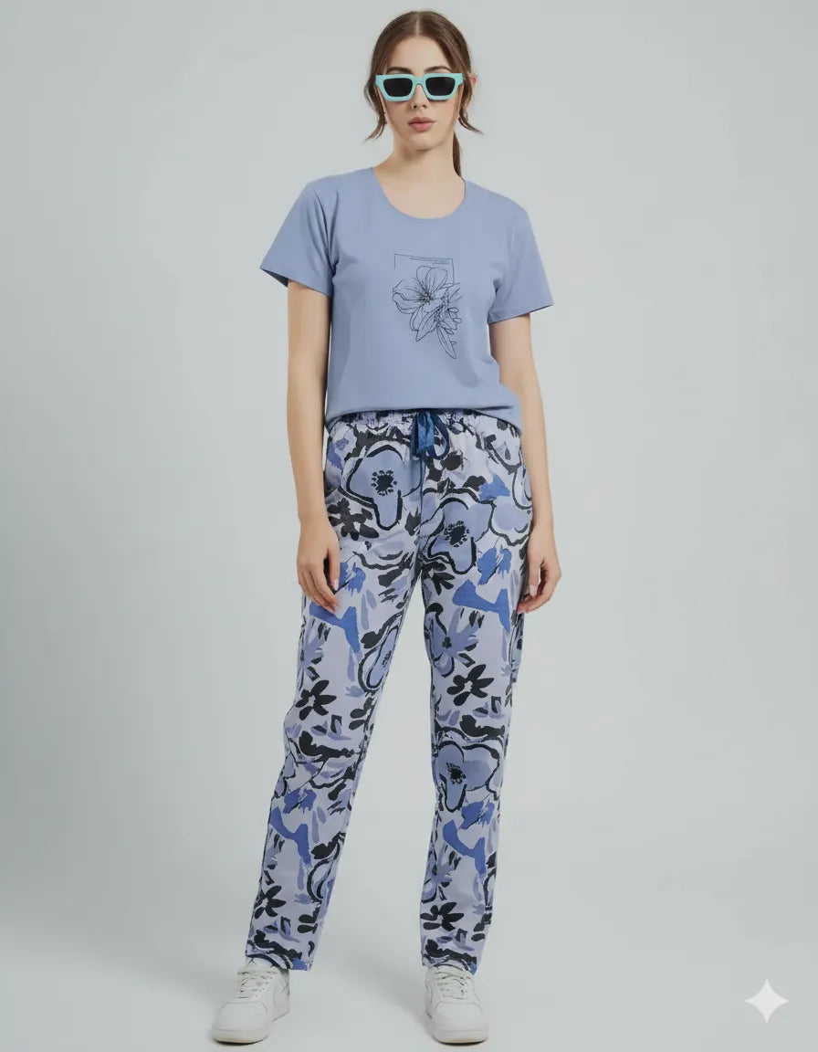 A soft, breathable 100% Rayon co-ord with a comfy tee and relaxed pyjamas. Easy to wear, easy to love—perfect for cozy nights and lazy mornings.