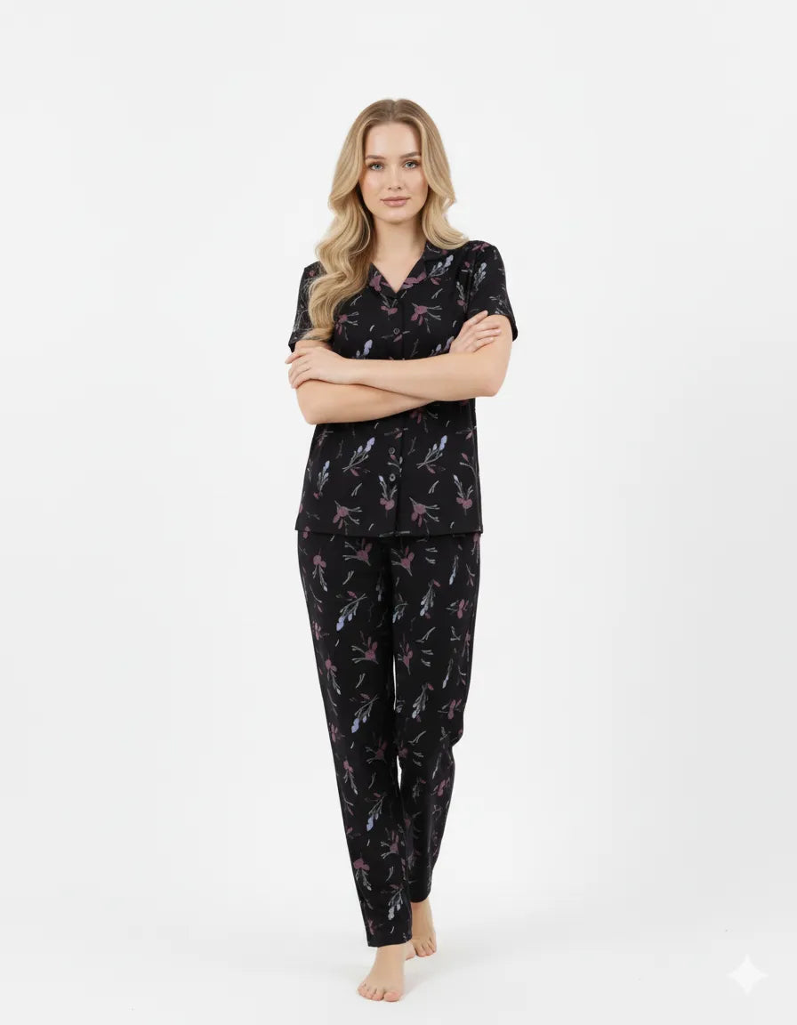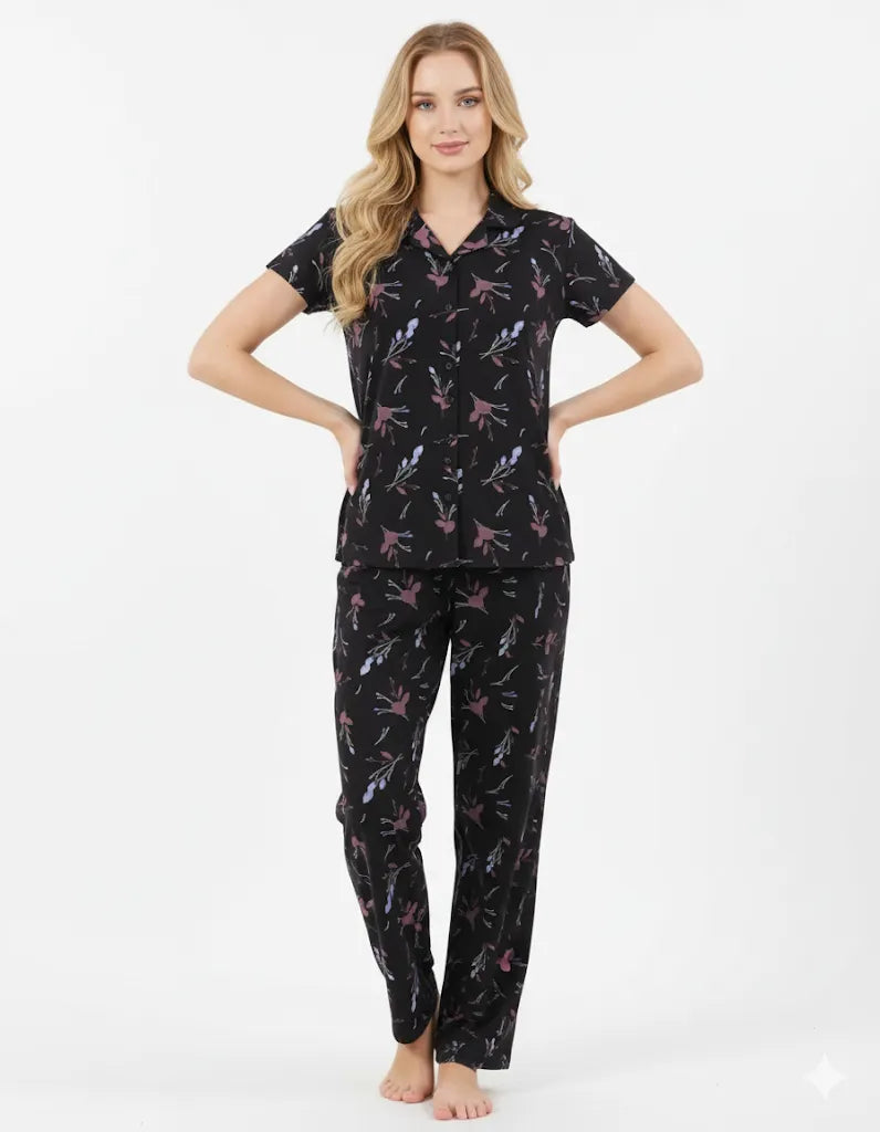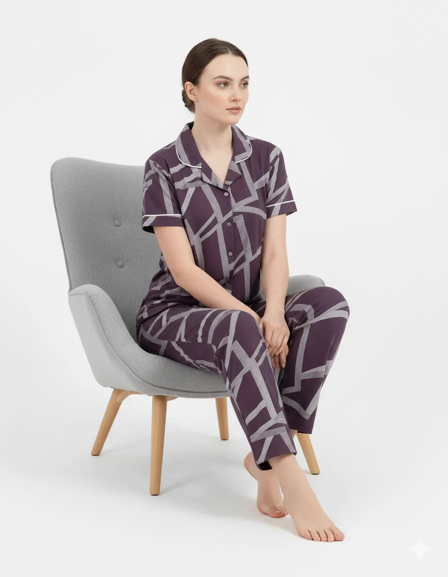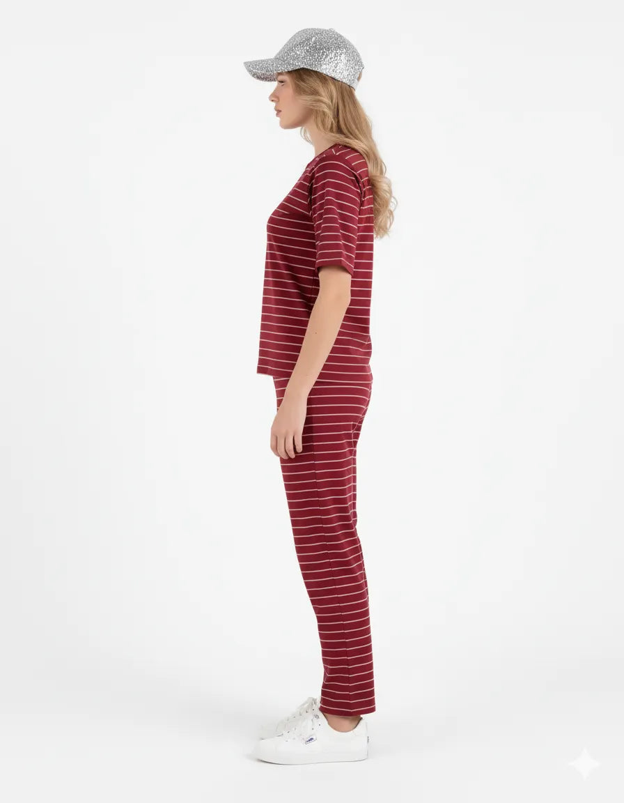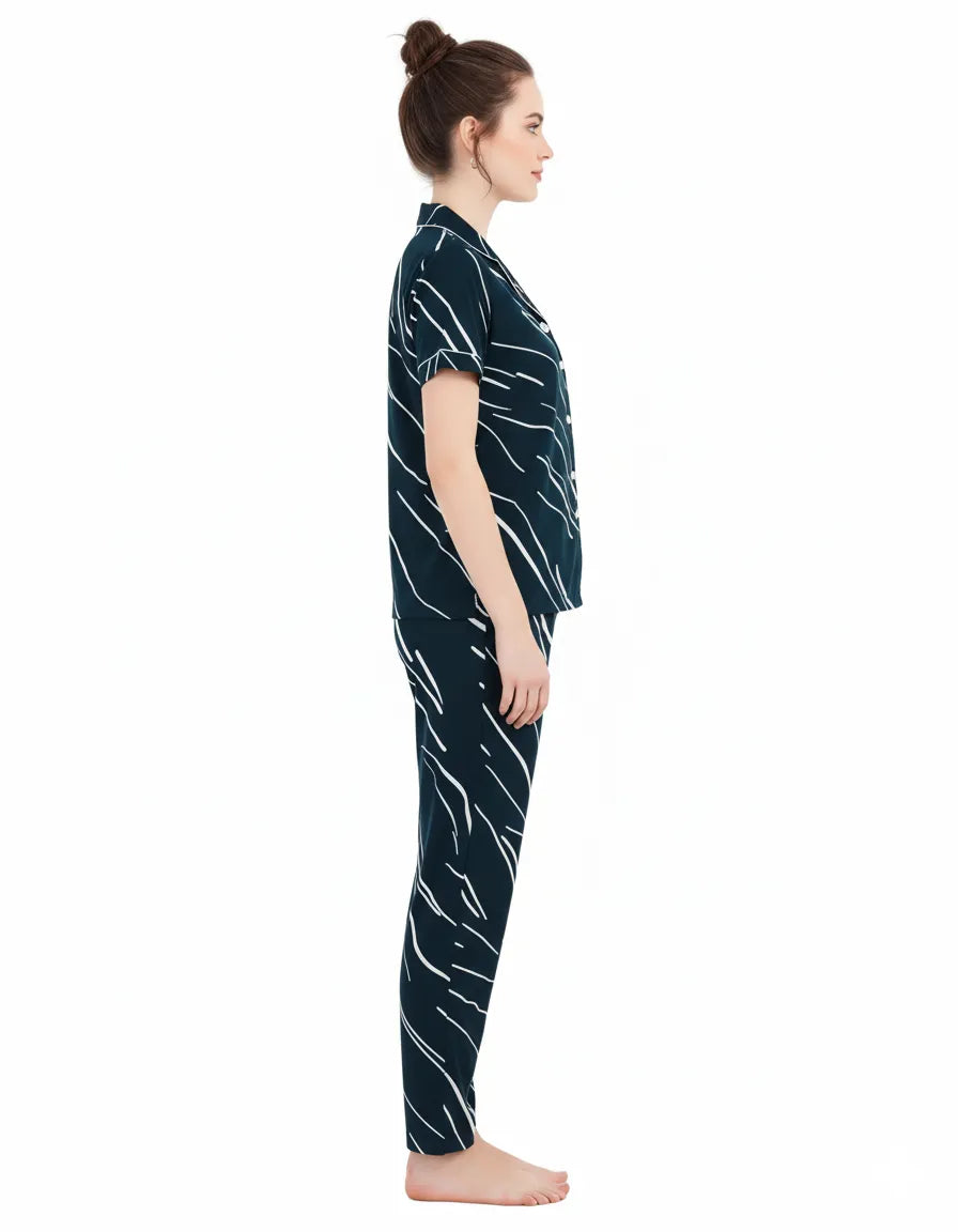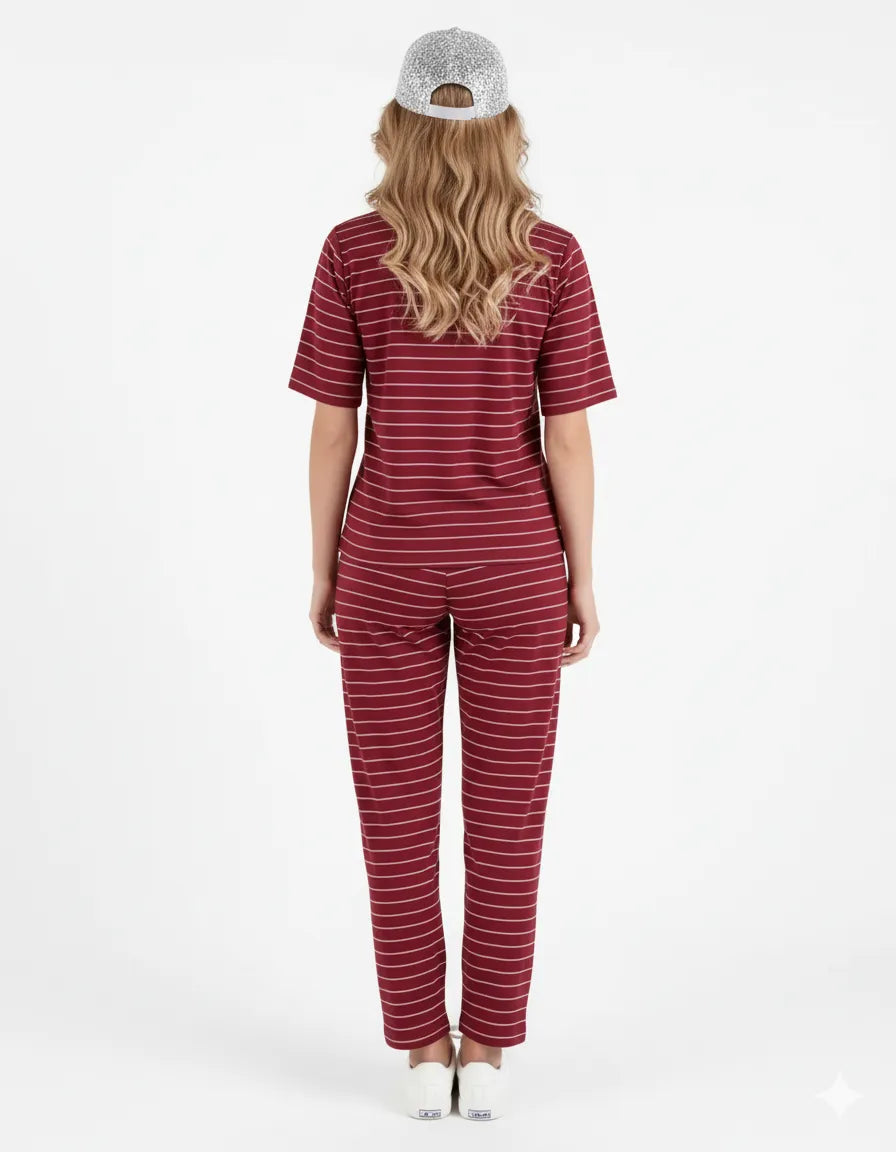 A soft, breathable 100% Rayon co-ord with a comfy tee and relaxed pyjamas. Easy to wear, easy to love—perfect for cozy nights and lazy mornings.