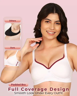 Experience seamless perfection with the Padded T-Shirt Bra. Crafted with advanced bonded technology, this stitch-free wonder offers a completely smooth silhouette under any outfit. Its innovative elastic-free bands guarantee zero irritation, so you can enjoy pure comfort from morning to night.