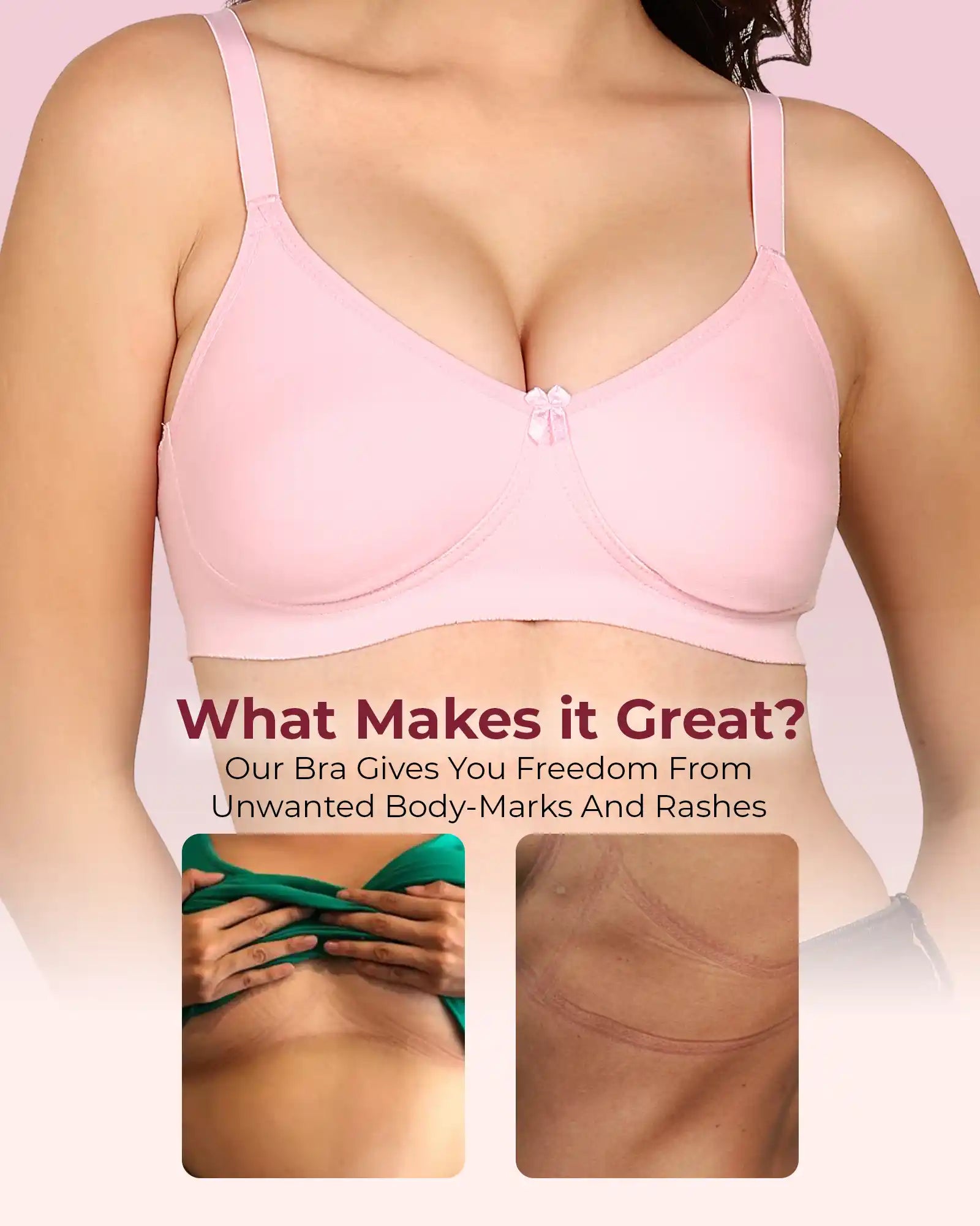 Yes! Seamless bonded bras are designed for daily comfort. With no elastic digging in and no stitches causing irritation, they feel weightless, stay breathable in Indian weather, and offer gentle support all day long.